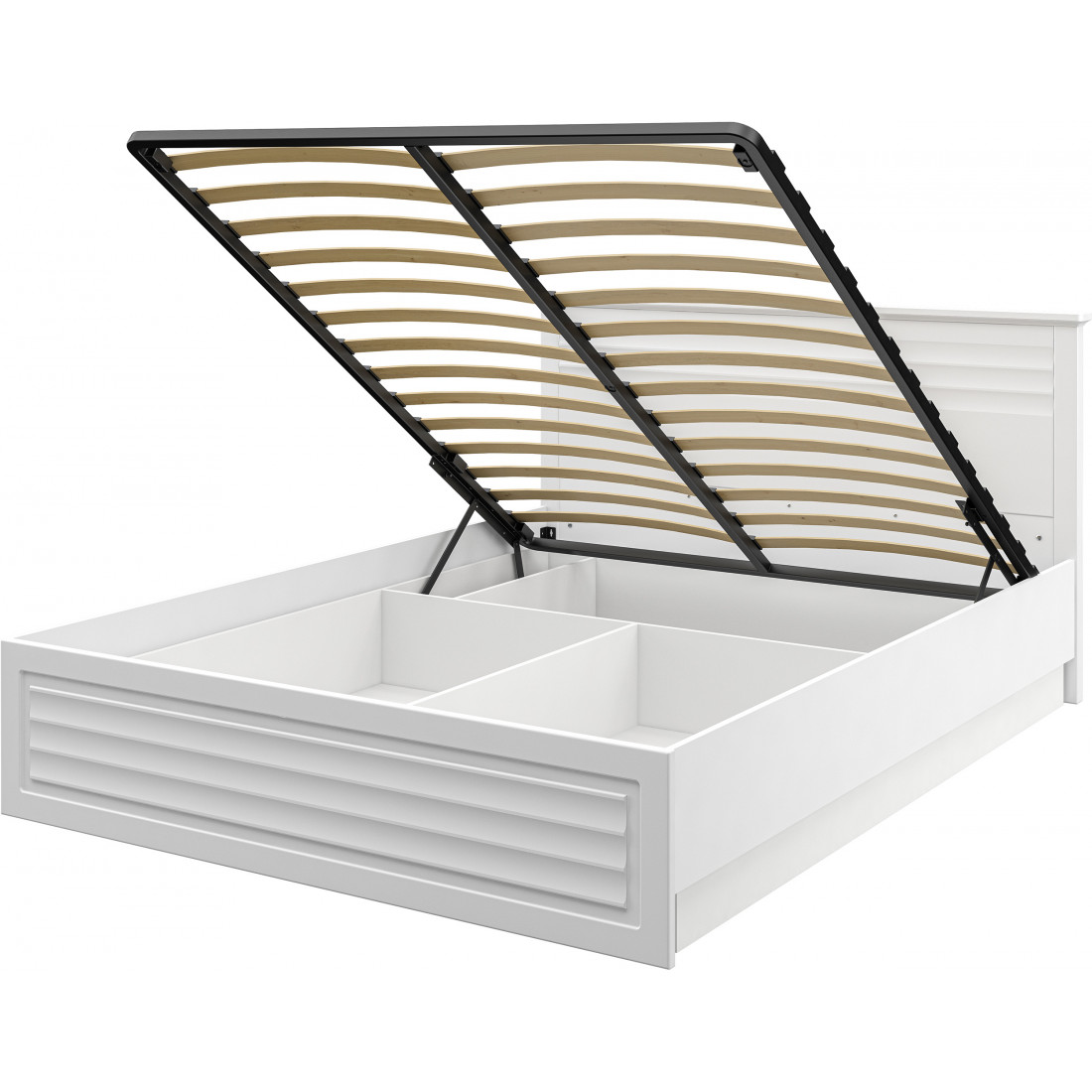 В кровати предусмотрен ящик для хранения белья с подъемным механизмом (газ-лифт). Ящик приобретается отдельно.