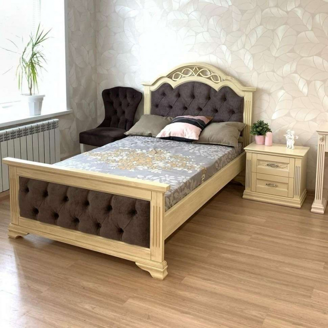 Двуспальная кровать Венеция MUR-101-01 с каретной стяжкой воплощает в себе классические тренды. Сочетание изящных оттенков удачно освежит Ваш интерьер и придаст знакомым формам новое дыхание. Неповторимые легкость и элегантность этой мебели создадут атмосферу тепла и уюта в Вашем доме.