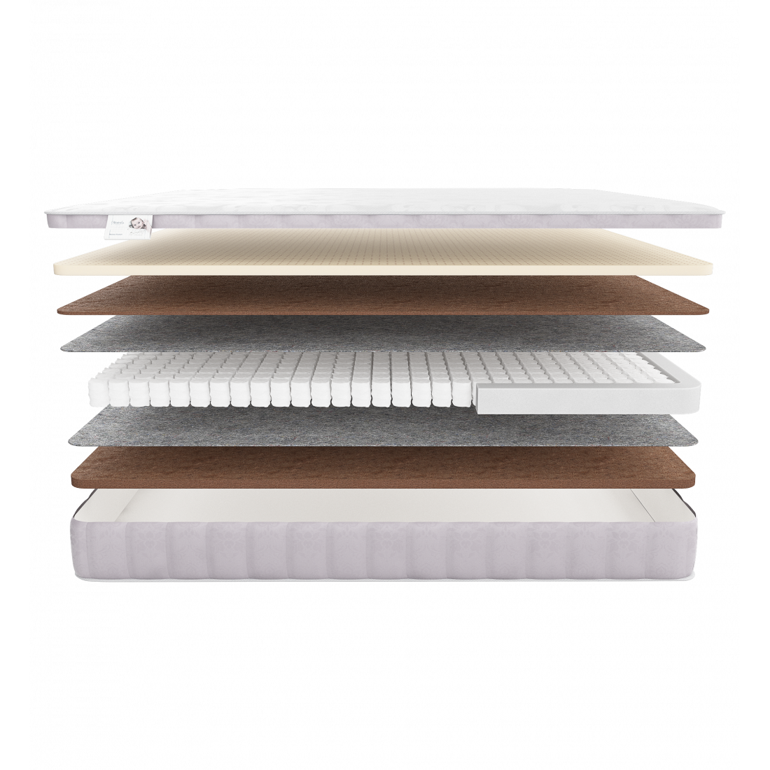 Двусторонний матрас с разными сторонами жесткости. С одной стороны более плотный кокос 100-ой плотности, с другой натуральный латекс с одним сантиметром латексированного кокоса. Обе стороны прекрасно подходят для формирования правильной осанки и здорового сна ребенка. Независимый пружинный блок в основе матраса будет надежной основой, которая поможет ощутить весь комфорт пружинного матраса.