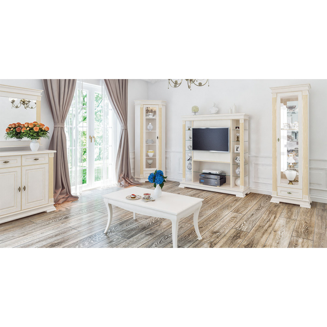 Витрины гостиной Афина послужат прекрасной основой, а тумба для телевизора и настенная полка, прекрасным дополнением комплекта.