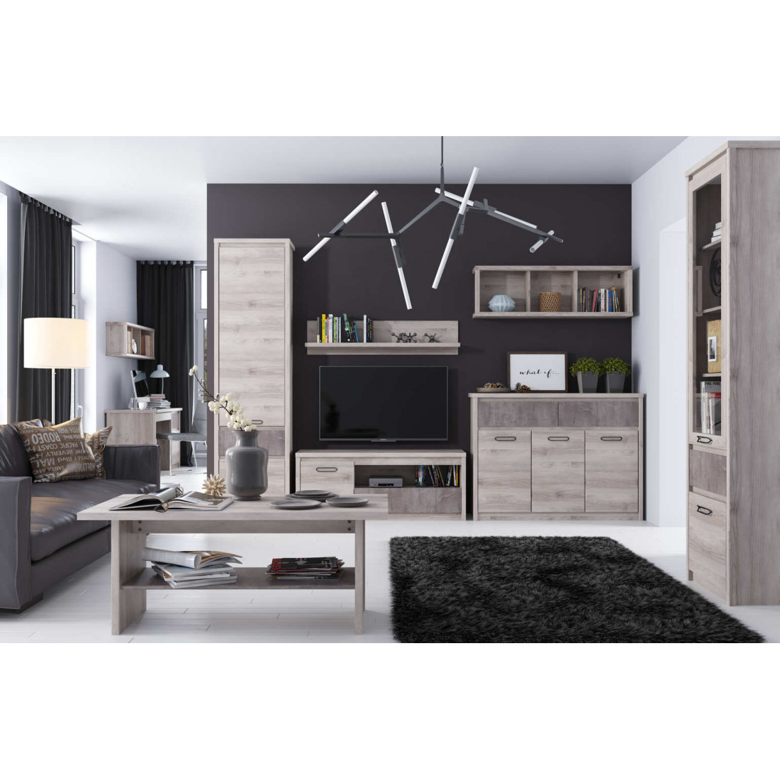 Гостиная Джаз выполнена в современном стиле. Отличительной особенностью этой коллекции является одновременное применение двух вариантов открывания двери: при помощи металлических ручек на одних фасадах и внутренней фрезеровки на других. Фасады выдвижных ящиков могут быть выполнены как в цвете оникс, так и в цвете каштан найроби. Эта мебель станет заслуженным украшением для любого интерьера.