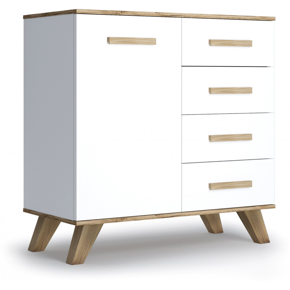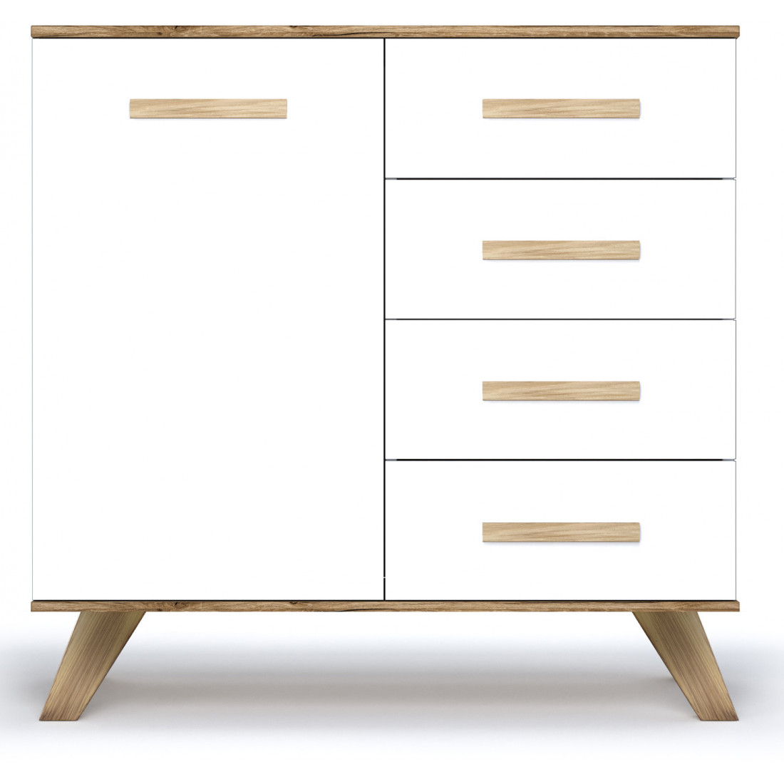 Комод на высоких ножках «Вега Скандинавия» практичен, подойдет для использования в качестве тумбы под телевизор или для белья в спальне.