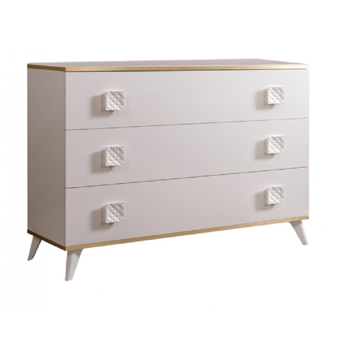 Вдохновленная самой Италией мебель коллекции "Diora"  это сочетание дизайна, красоты и функционала. Корпус комода доступен  в двух цветах, лакированный «орех орегон» и лакированный «слоновая кость».Кромка доступна на выбор в двух цветах «золото» и «серебро».