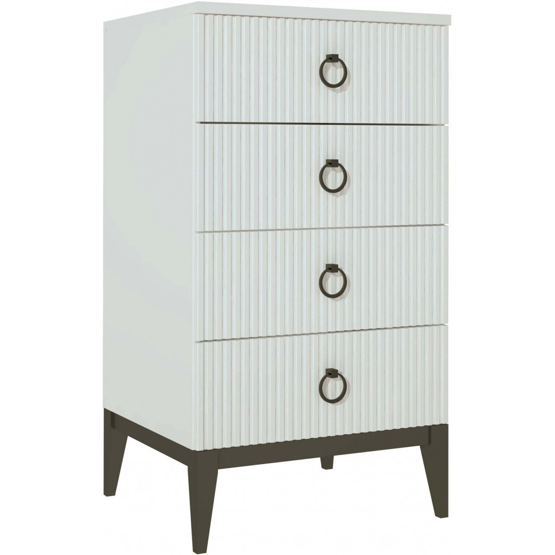 «Белый Премиум»; -Фасады ящиков выполнены из МДФ с декоративной фрезеровкой в виде вертикальных полос и окутаны плёнкой