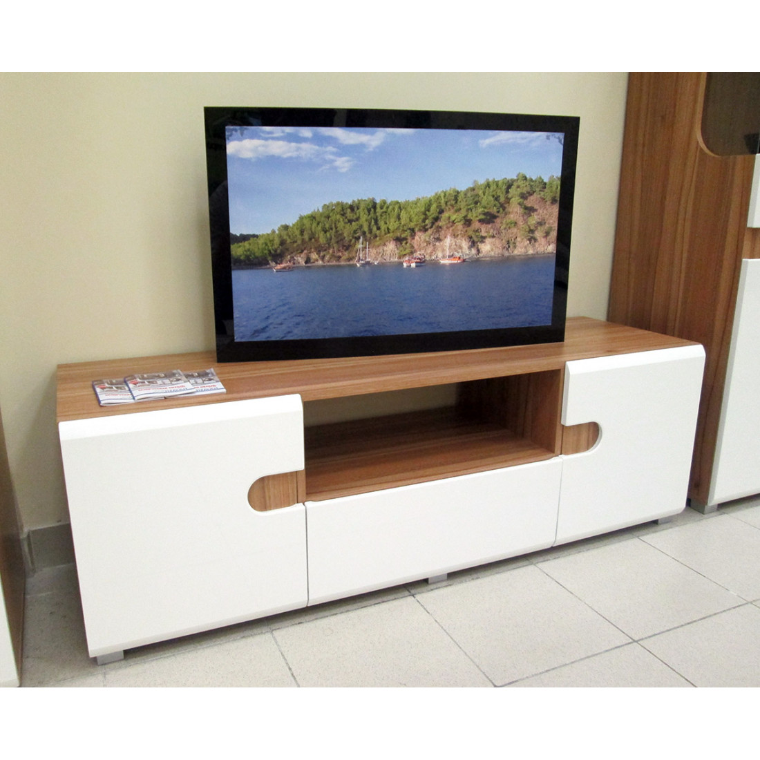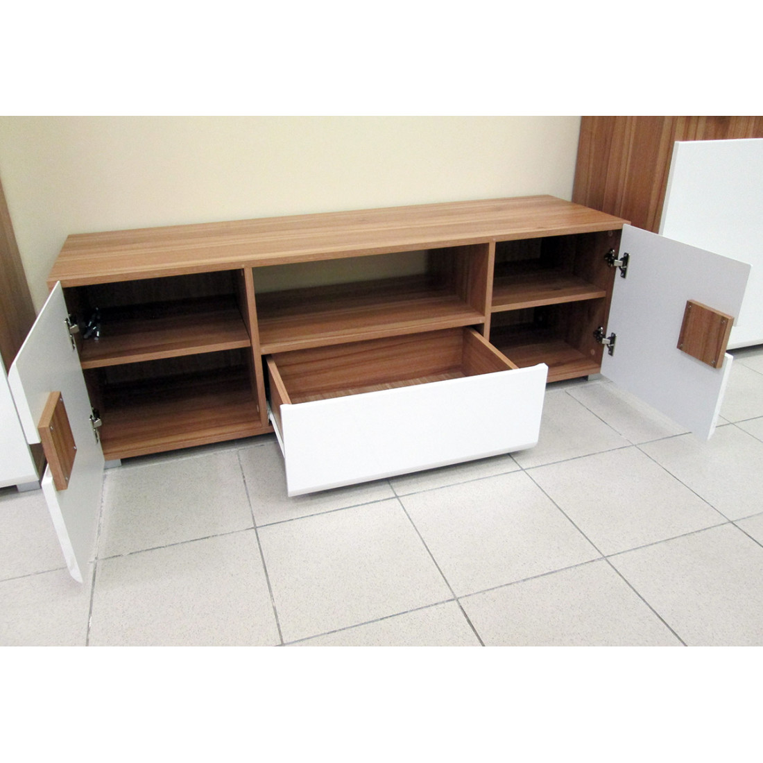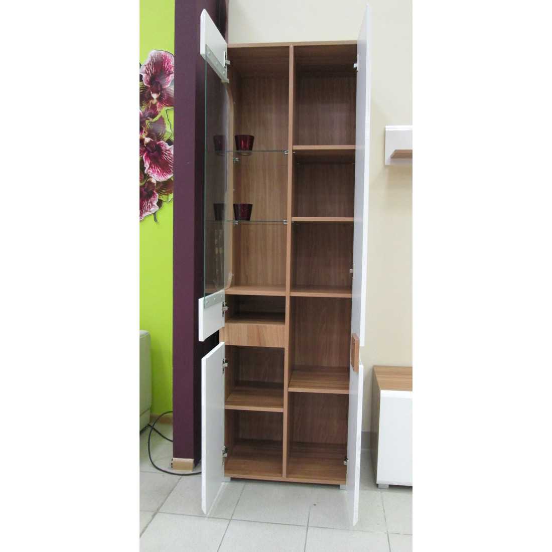- три варианта цветового исполнения фасадов: дуб сонома/черный глянец, дуб сонома/белый полуглянец, дуб сонома/светло-коричневый глянец;