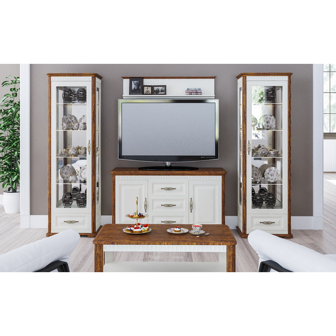Купить полку Марсель в гостиную можно отдельно, так и дополнив ее тумбой или витриной из серии.