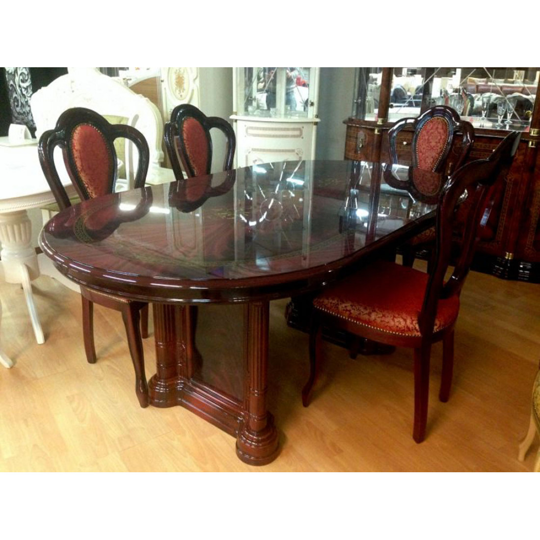 Обеденный стол раздвижной Роза (могано) от фабрики ДИА мебель- выполнен в классическом стиле. Цвет могано в сочетании с глянцевым покрытием придаст вашей гостиной больше элегантности и эстетичности. Такой раздвижной стол не займет много места и будет незаменим в вашей гостиной. Большие и прочные ножки делают его неподвижным и соответственно устойчивым.