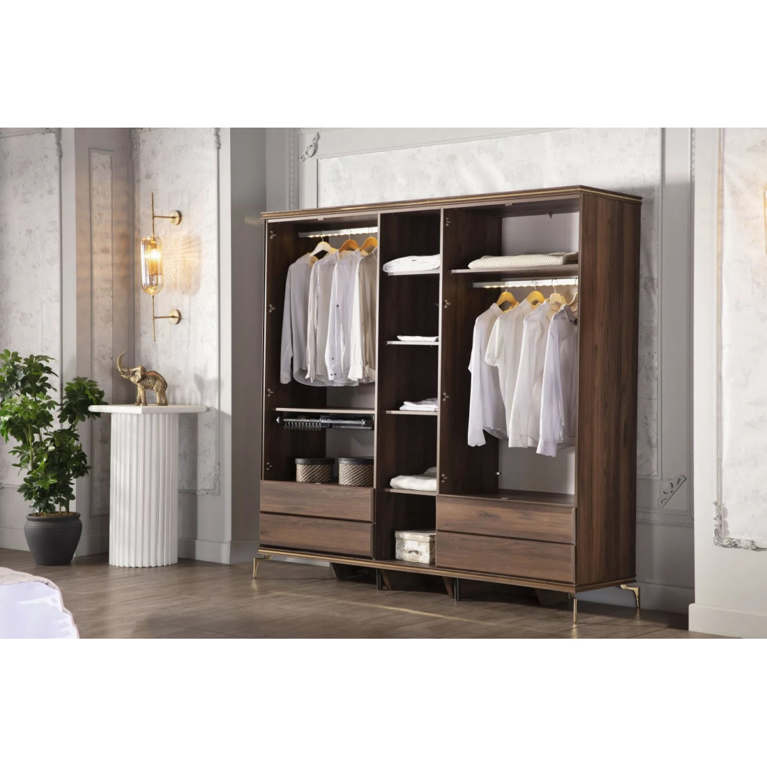Трехстворчатый шкаф для одежды с зеркалом Тиффани 3D4S крем вудлайн