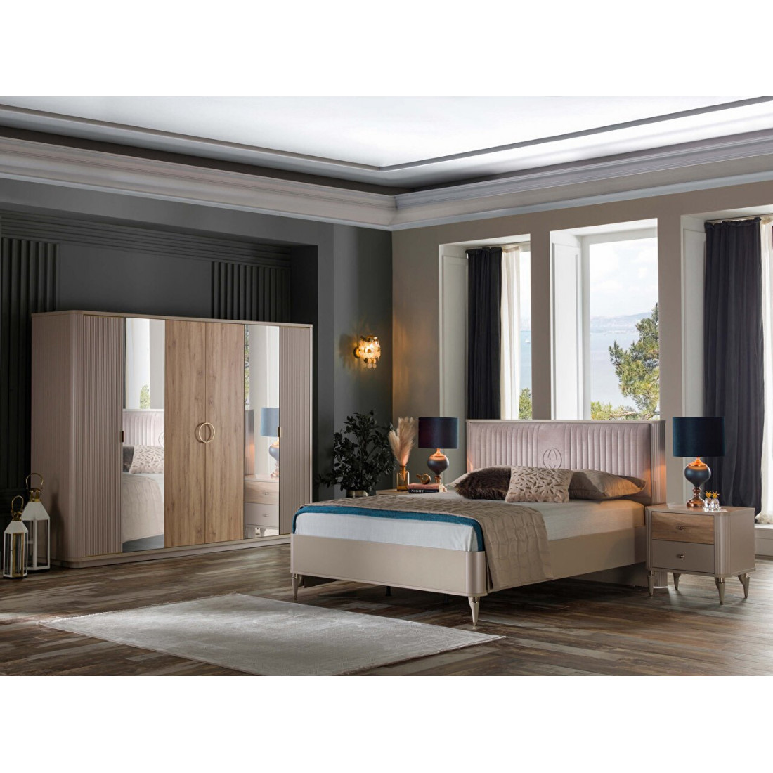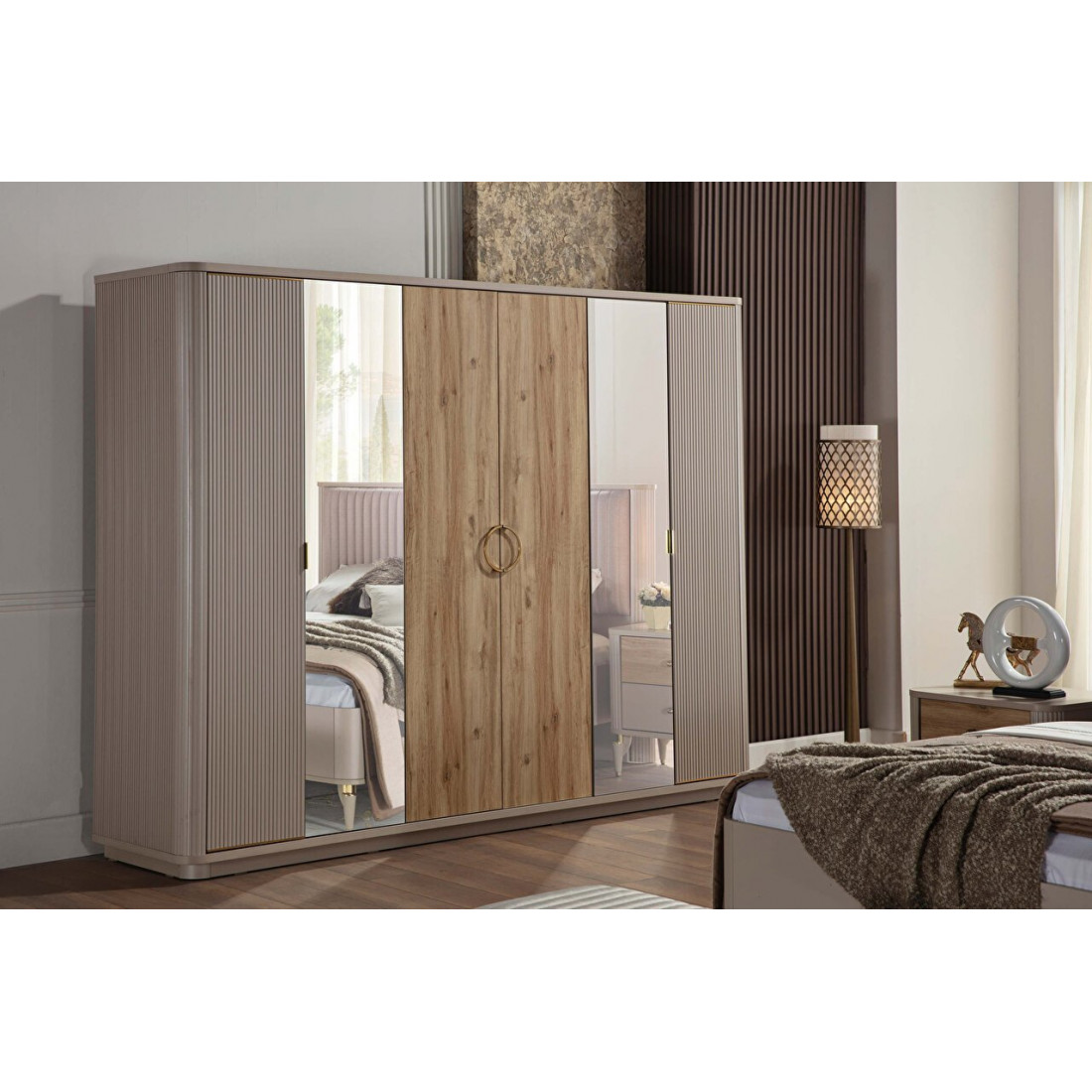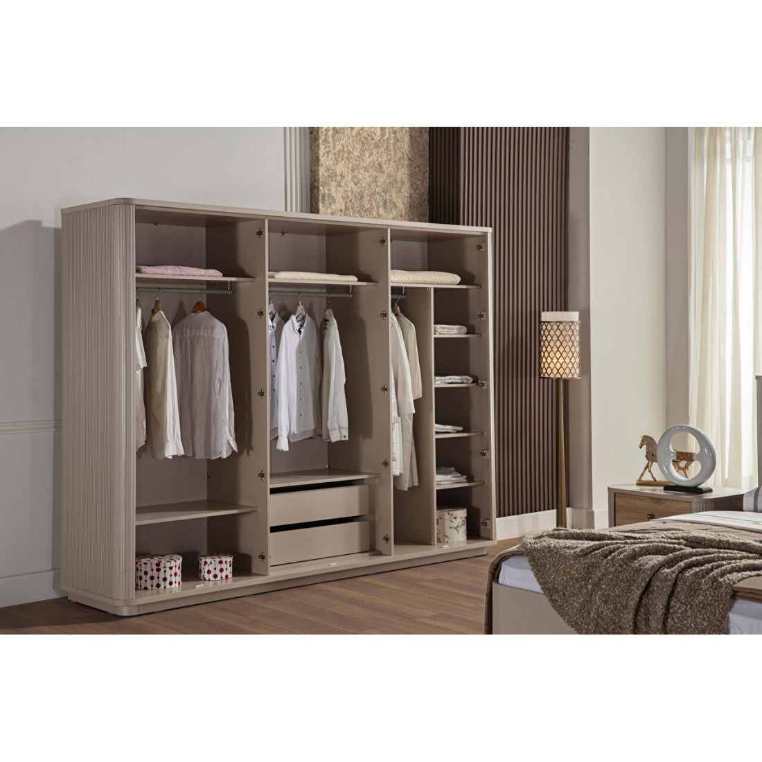 Шкаф прекрасно сочетается с другими предметами интерьера( тумбы прикроватные, кровать, комод, туалетный столик и др.) серии Санвито  от турецкого производителя Беллона!