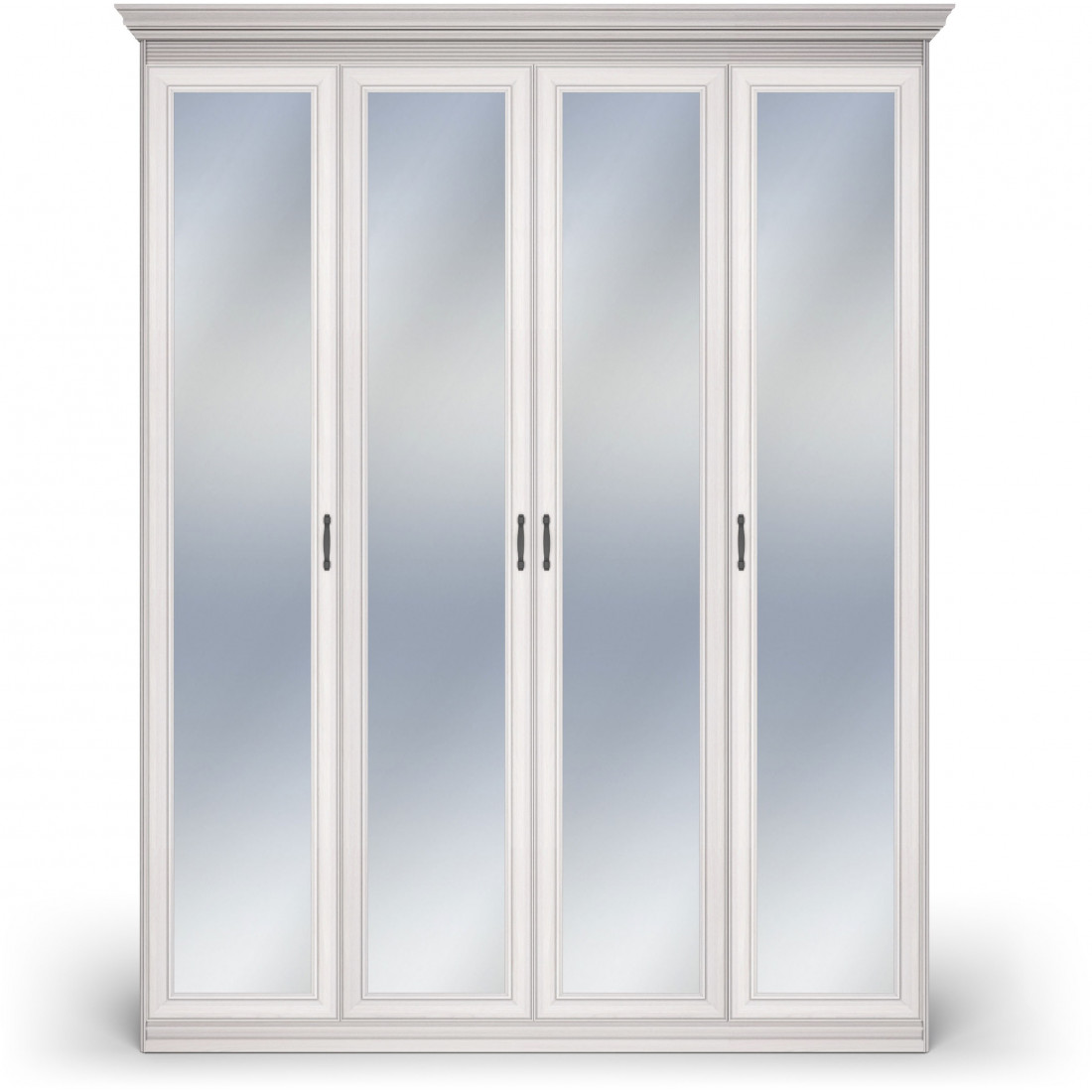 Шкаф 4-х дверный с зеркальными и глухими дверями Неаполь Ясень анкор светлый (патина "серебро")