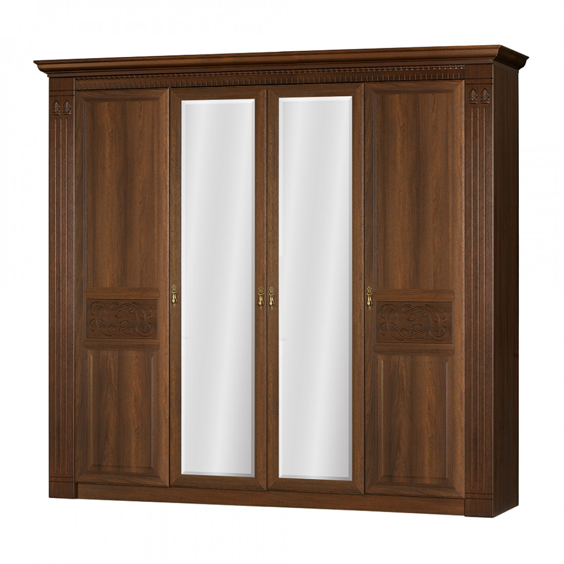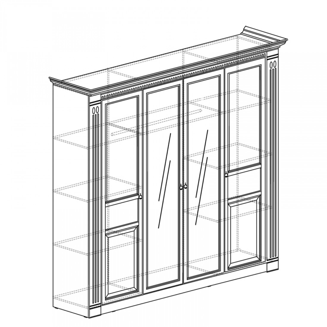Шкаф 4-х дверный с зеркальными и глухими дверями Неаполь Ясень анкор светлый (патина "серебро")