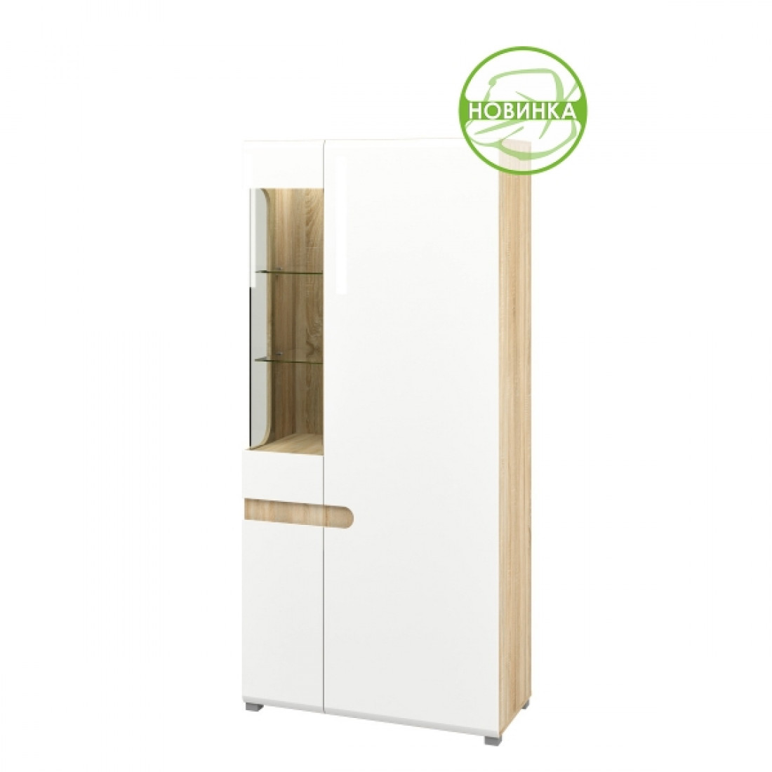Особенности двухстворчатого комбинированного белого правого шкафа витрины Леонардо МН-026-19: