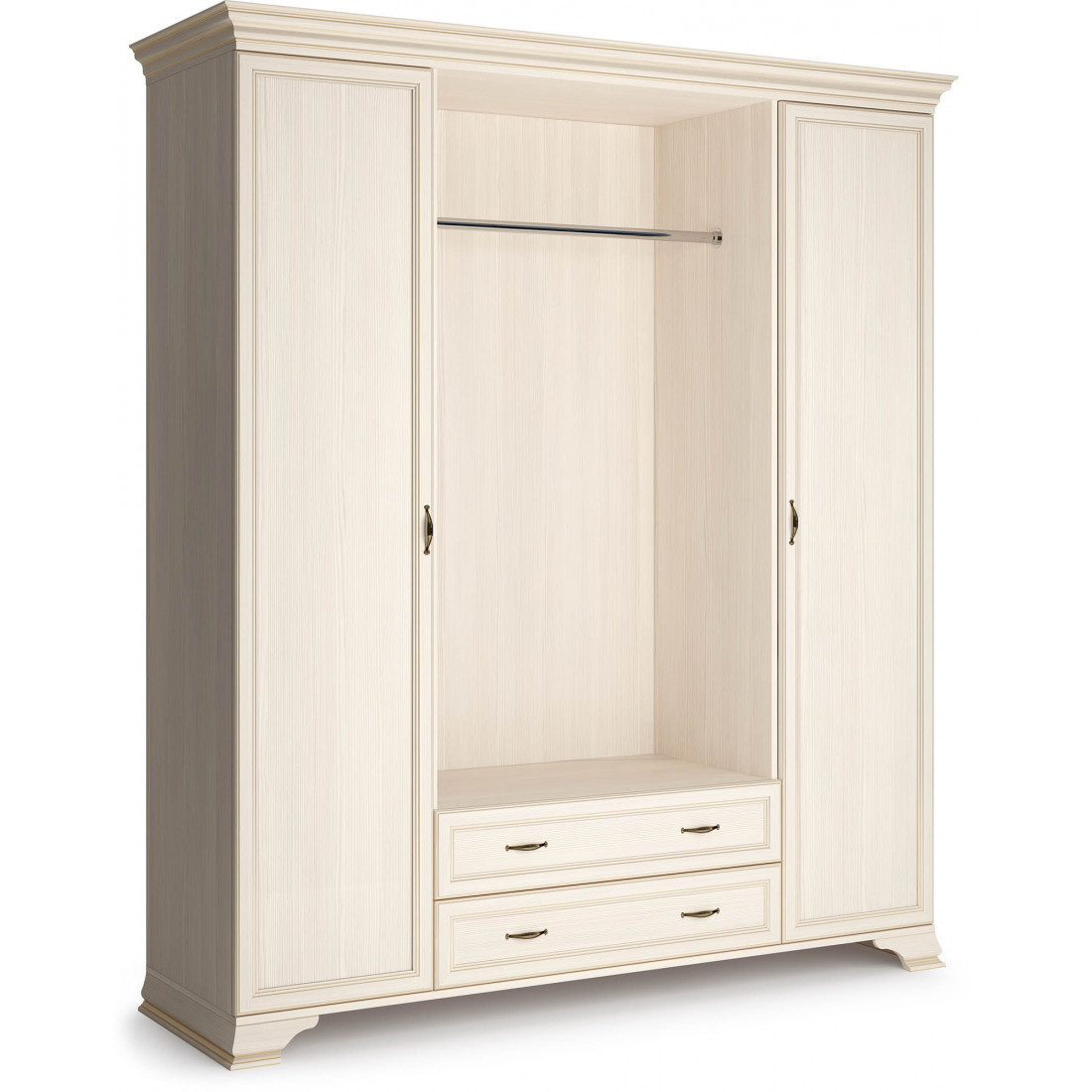 4-х дверный шкаф из коллекции для спальни «Сиена» подставляется в комплекте с боковыми фасадами, центральные двери (на выбор - зеркальные или глухие) поставляются отдельно от шкафа.