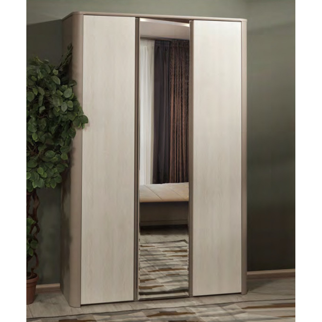 Трехстворчатый шкаф для одежды с зеркалом Тиффани 3D4S крем вудлайн