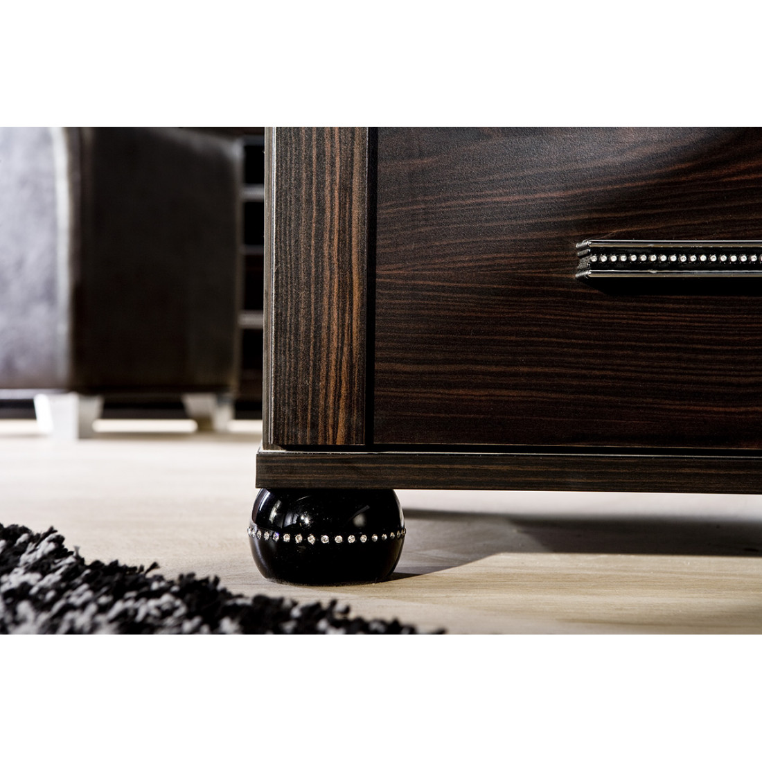 • стразы украшают уголки, ножки, ручки и рисунок;