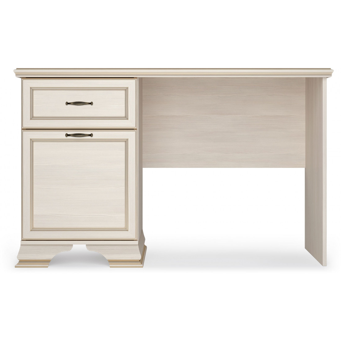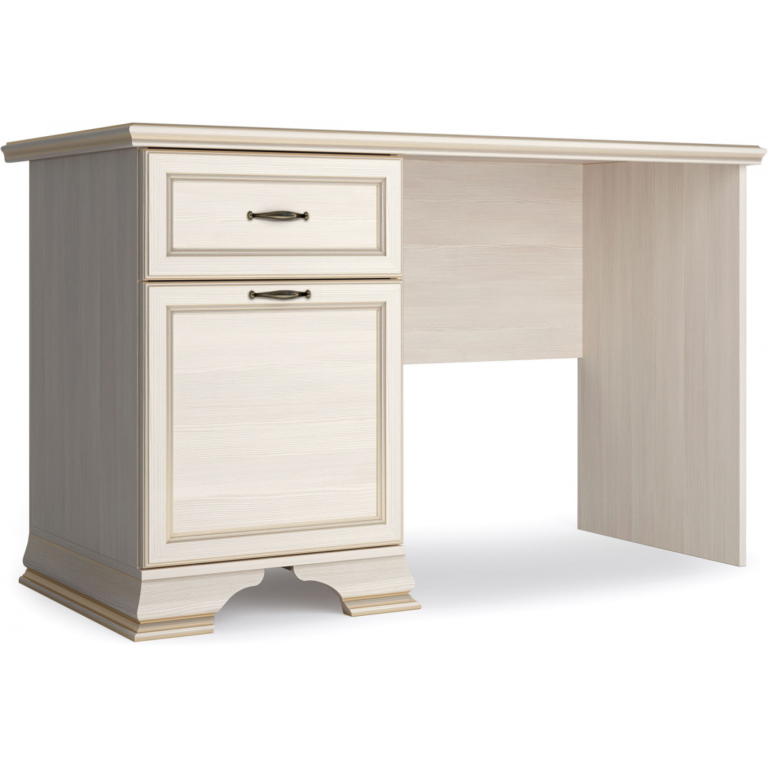 Коллекция производится в текстуре «бодега белый» с эффектом золотого патинирования. Облик «Сиены» дополняют рамочные фасады и карниз в классическом стиле, а также эффектные опоры из МДФ. Мебель комплектуются металлической лицевой фурнитурой премиум-класса в цвете «старая бронза» и надежной крепежной фурнитурой.