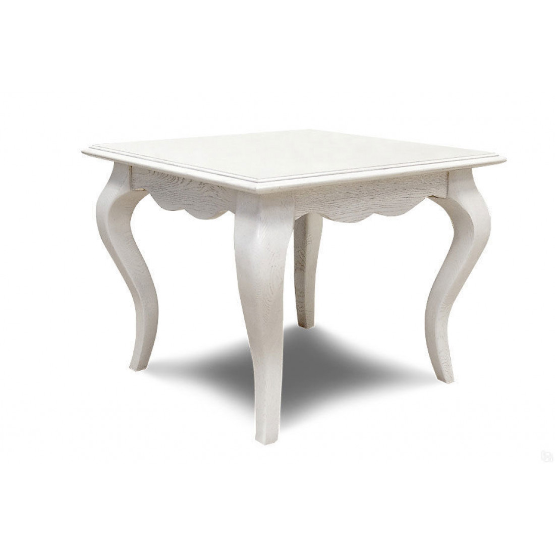 Небольшой журнальный столик на гнутых ножках из коллекции "Оскар" отлично дополнит интерьер гостиной. Декорирован резьбой, выполнен из массива и шпона дуба, окрашен в благородный оттенок "Белая эмаль с патиной".