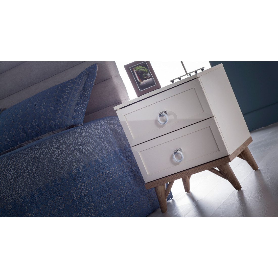 Прикроватная тумбочка «Mavenna» турецкой фабрики «Bellona» выполнена в современном скандинавском стиле. Для повышения удобства использования и срока службы изделия на дверцах применен механизм плавного закрывания. Для облегчения уборки -высокие ножки. В изделии используются материалы, не содержащие канцерогенных веществ по стандартам качества Е-1, которые безвредны для окружающей среды и здоровья человека