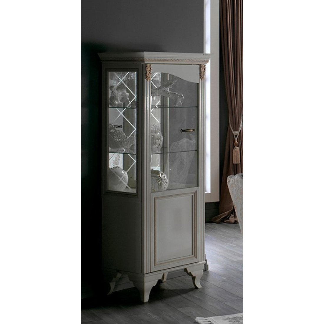 Одностворчатая витрина Карат KART-12 выполнена из закаленного стекла.